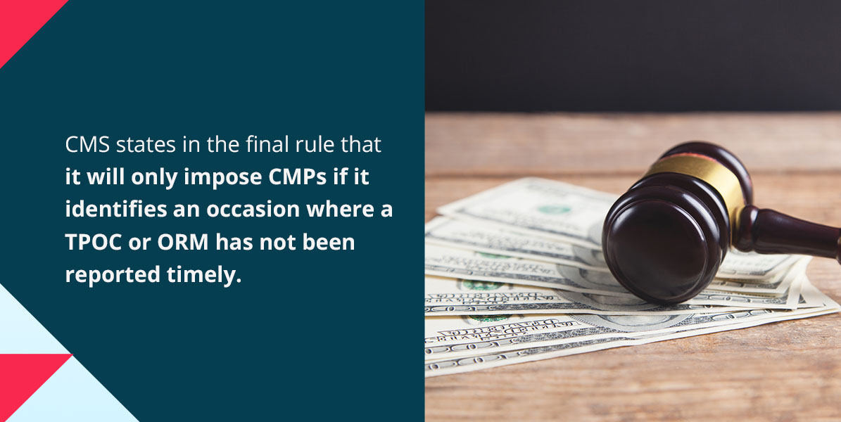 CMS states in the final rule that it will only impose CMPs if it identifies an occasion where a TPOC or ORM has not been reported timely.